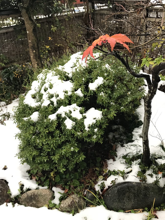 | 12月5日(金) 初雪に 紅葉映えたり 残り月 | |||||||