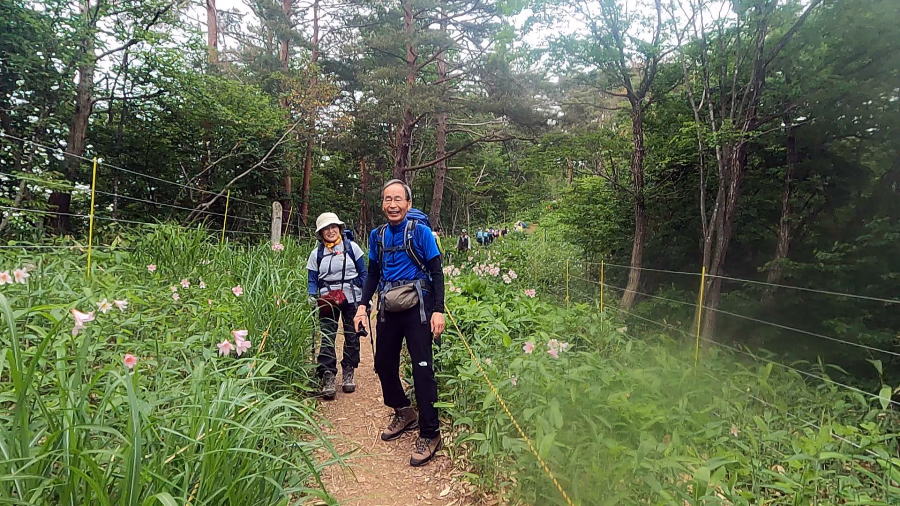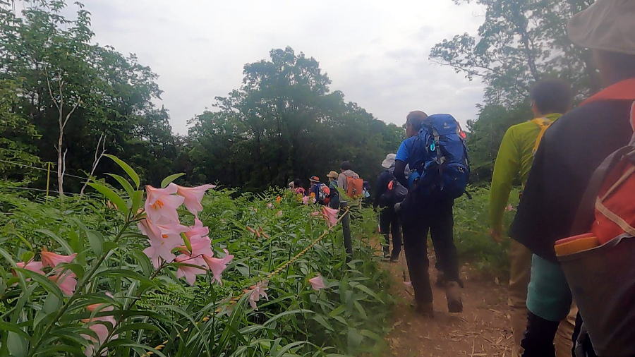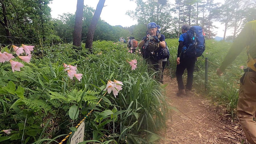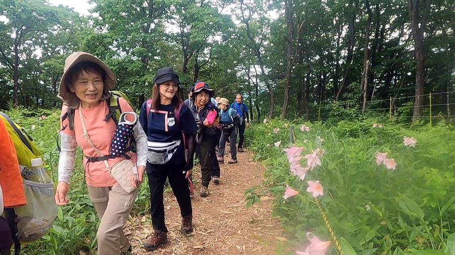 | 関川村歴史館主催の山城探索会は ヒメサユリの群生で名高い三条市(旧下田村)の高城址へ 現地はヒメサユリ祭りの真っ最中で、ちょうど開花の最適期 群れ咲くヒメサユリの中を歩くとその先に「高城本丸址」 ここは下田郷を支配した下田長尾氏の城塞 城主は川中島合戦で活躍したものの、謙信の怒りに触れて誅殺、高城も落城 そんな歴史の悲話を知ってか知らずか 可憐なヒメサユリたちが艶やかに淑やかに咲き誇り 探索会参加の善男善女一同、ただただ感歎歓声 行きのバスの中では、みっちり歴史講座 団子より花の人びとかと思いきや どうしてどうして 中世越後の戦乱の世にも興味津々 かくて、団子も花も両方味わい尽くした山城探索会 なのでありました |