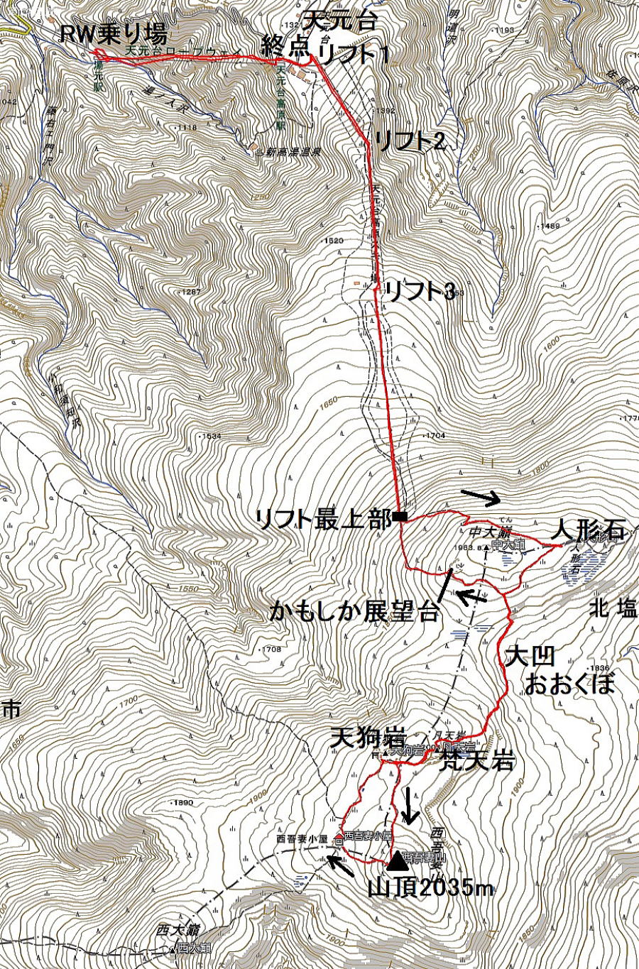 | <コースとタイム> RW発8:15-8:22天元台 リフト発8:30-9:17リフト最上部9:27-10:20人形石10:31-11:42梵天岩ー11:55天狗岩分岐付近12:38ー13:00山頂ー13:28天狗岩神社ー14:41かもしか展望台14:46-15:08リフト最上部ー15:54天元台RW15:56-16:04RW着 |