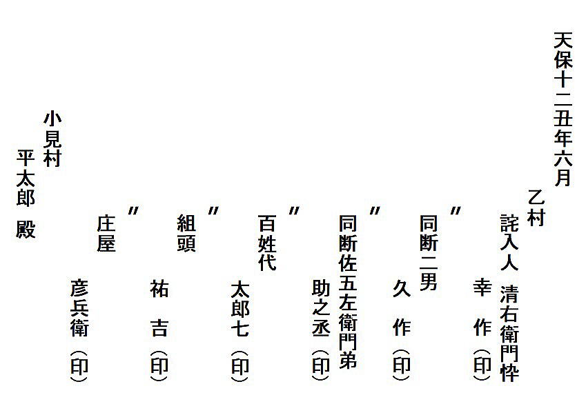 | 天保12年(1841年) 詫び證文 平田家文書№516 | ||||