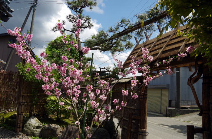 久しぶりの庭だより 今、桃が満開。 ここしばらく雨続きで、雨の中での満開は可哀想だったのだが、今日は久しぶりの晴天。ようやく受粉作業ができる。が、相手がいない。隣に植えた花桃は、まだ咲いていない。 栽培テキストには、ウメ、リンゴ、ナシ、何でもよいとあったので、山林の遅咲きの梅の花枝を採ってきて、受粉させた。 ようやく晴れて、今日が桃の結婚日 さて、去年のようないい実をつけてくれるかどうか。 本当は、こんなに咲かせないで、蕾のときから摘んでおかなければならないらしいのだが、こちらは、花を見るのも目的なので、全部咲かせて、受粉させて、実をつけさせてから摘果する。 花も実もある、桃の人生 緑の季節になって、猫額苑もいい感じになってきた。ブナの若葉は清々しいし、ハナニラ、バイカカラマツ、タツタソウなどの小さな山野草の花もうれしい。 ブドウ、ブラックベリー、それに昨秋植えたラズベリーなど、実物も新芽を着々と吹き出して来た。アケビはツルを伸ばしながら雄花と雌花を咲かせて、これまた受粉の最中。五葉のアケビと三葉のミツバアケビを並べて植えたので、うまく受粉してくれるといいのだが。 そんなこんなで、いつもと変らぬ猫額苑の春が動いている。 |