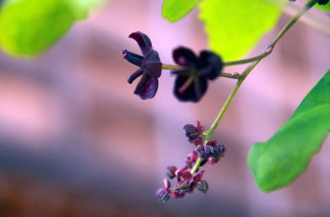 ![]() アケビ 雌花と雄花 |