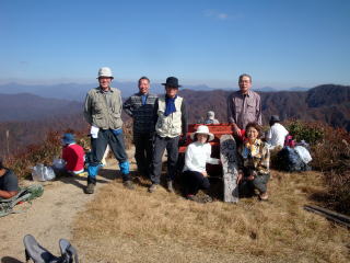 光兎山頂で、一行6名、記念撮影 |