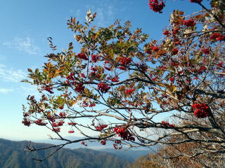 ![]() ナナカマドの実、その下彼方に関川盆地 |
