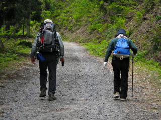 息子が久しぶりに帰ってきた 珍しく翌朝 早く起きてきた 「天気もいいし 大峰山へ 山桜でも 見に行くか?」と私 「うーん いいけど・・・」と息子 「突然で! 何用意すればいいの?」と妻 「何もいらないさ お昼は コンビニで買っていこ」と私 「なら 行ってもいいわ」と妻 さて 山道を歩きながら 「ハイキングコースなのに そんな本格的山登りの格好で」と笑う息子 「低くても 山は 山」と言いつつ 場違いだったかなと不安になる 登山靴に2本ストックの私 「わたしは ズック靴しかないんだけど」と 20数年も使い込んだザックを背負った妻 「おれ、買ってやろうか」と息子 何やら山には詳しい様子ありあり で 頂上で昼食して 下山して そのまま登山用品店へ直行 私も ついでにコッヘルやらコンロやら買ってもらって ついでのついでに 古くなったデジカメまで買い替えてもらうことに 息子も結構山好きで 本格アイゼンを買って 雪渓を歩いているとか この日初めて語ってくれて 何とも 父の日と母の日が一緒に来たような こどもの日の親孝行 山歩きには こんないいこともあるのですねぇ ちなみに 遠くに暮らして今日はいない娘も 親孝行です 何しろ 「じいちゃん せかいでいちばんすき」 などと言ってくれる 宝の孫を産んでくれたんですから |
