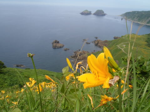 | さて、金北山は国防の砦だ。有刺鉄線で囲まれ装甲車のパトロールにも会った。どこぞの国なら、カメラを向けただけで身柄拘束となるべき要所だ。一般の登山者に開放している我が国の平和さをありがたく思った。 そして、何よりも、佐渡の仲間の親切に感謝した。 ところで、前日、その佐渡の仲間の案内で、大野亀のトビシマカンゾウを見せてもらった。