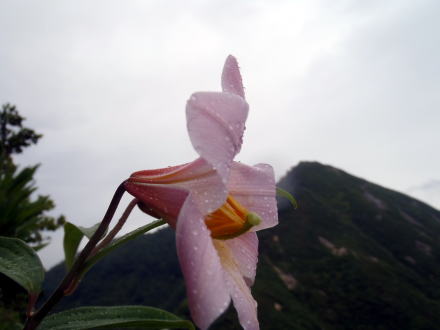 ![]() 雨に濡れるヒメサユリ、向うは光兎山頂 |