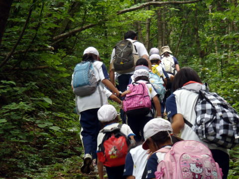それにしても、驚いたのは、 子どもたちの思いやりにあふれた行動。 5、6年生の子が 1,2年生の子のめんどうを実に良く見てくれる。 ちょっと立ち止まると 「大丈夫?」 と、振り返っては声をかけ、 リュックサックを持ち上げてくれる。 傾斜がきつい道や濡れた箇所に差しかかると、 「気をつけて」 「ここ滑るからね」 などと、手を引いてくれる。 ロープ場に来ると、 1年生の子が手袋を取り出して、 うまく入らない手に四苦八苦しているのを見て、 「そっちの指をこっちに」 などと手を添えてくれる。 荷を重そうにしていると、 リュックや水筒を担いであげる。 こっちが「そんなに持って大丈夫か?」というと 「体力づくりです」なんて言葉が返ってくる。 こんな行動がごく自然に振舞われている。 先生が来て 「1年生は、自分の荷物ぐらい自分で持ちなさい」 と言っているくらいだから、 先生の指導で動いているのでは、ないらしい。 5,6年生のそんな姿を見ているものだから、 3,4年生の子も、 下の子の世話を自然に行っている。 なんとも甲斐甲斐しく、ほほえましいのだが、 それが、自然になされていることに、 感心するやら、驚くやら。 きっと、1,2年生の子も 来年、再来年 小さい子のめんどうを 見るようになっていくのだろう。 5,6年生の子も 小さいときに、上の子から、 そんなふうに めんどうを見てもらってきたのだろう。 ごく自然な振る舞いが そのことを物語っている。 そんな子どもたちの後ろ姿を見ながら、 山道を歩き歩き、 ふと、 我が国が初めて出くわす人口減少社会は、 競争型から共生型への転換を求めている という論文を 最近新聞で読んだことを 思い出していた。 この村の子どもたちは、 時代の先を行っているのかもしれない。 |