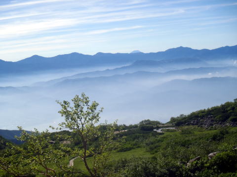 ![]() 雲海の彼方、右端に富士、左端が北岳 どれも登ってみたい山 RW千畳敷駅 2612mから |