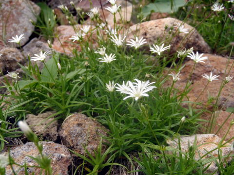 荒々しい岩肌に咲く イワツメクサがありがたい 二の池の分岐に出るまでもう一息だが 酸素が足りなくて足が出ない |