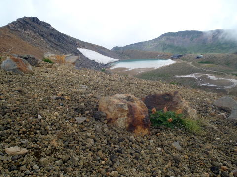 ![]() 12:40 二の池分岐で山頂と池を振り返り、名残を惜しむ 下山はいつも後ろ髪引かれる思いがする |