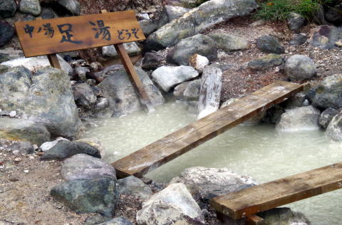 ![]() 8:40中ノ湯 硫黄の匂いが立ちこめている |