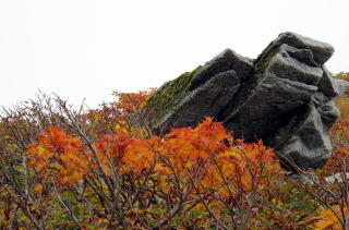 鋒立峰の斜面で岩の形と紅葉の組合せが面白くて |