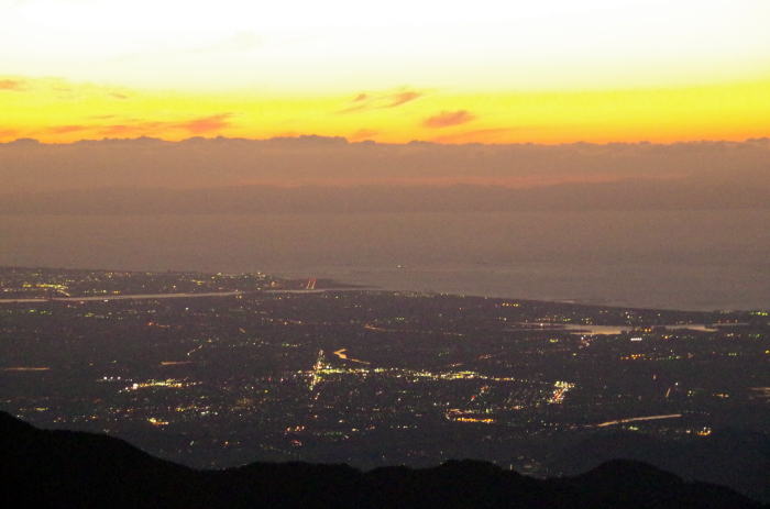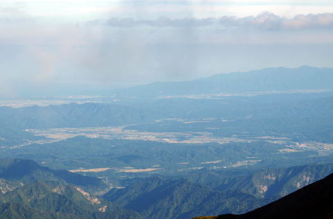 ![]() 10/8 17:42 朳差小屋の前から新発田市の夕景 |