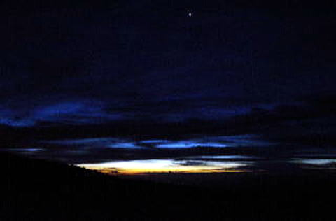 ![]() 翌10/9の4:56 黎明、東の米沢盆地方面 |