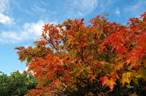 ![]() 頼母木山頂のモミジ 青空に映えて |