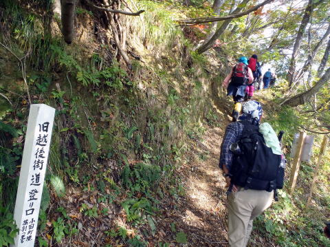 越後関郷と米沢を結んだ旧街道に十三峠あり、宇津峠はその中でも最高所にある 関川歴史館主催「古道を歩く」に参加して、その宇津峠越えの道を歩いた 峠の上で講師の方に教えてもらって、初めて気付いたのだが この峠が越えている尾根筋は、飯豊連峰と朝日連峰をつなぐ尾根筋で、越後の荒川水域と出羽の最上川水域を分ける分水嶺となっている 帰宅後、地図で確かめてみると、峠から北に延びる尾根は徐々に高度を増し、やがて祝瓶山から大朝日岳に辿りつく 南に延びる尾根も、北側よりは少し複雑に曲折するものの、やがて地蔵岳に辿りつき種蒔山から、飯豊本山へとつながっていく 祝瓶山はまだ登っていないが、それ以外の山はみな昨年登った山で、それらの山々の接点に立ったようで、なにか、気宇は壮大になる のどかな秋の一日 色づき始めたブナ、モミジ、真っ赤に葉を染めたヤマウルシ ツルリンドウは赤い実になっていたが、咲き誇っていたのはリンドウ 道端には、キノコ、その見解が一致したり分かれたり まっ、食べ(させ)てみれば分かるさなどと、笑い話もでたり 一行はみな、おもいおもいに山の道を楽しんでいた ![]() ![]() 明治11年、47歳の英国人女性イザベラバードが日本人の供一人を連れて長旅の途中、この峠を越えた 峠近く「イザベラバード遠望地」の標示が立つ所 ここから米沢盆地を眺めたにちがいない、としたらこんな風景が見えたはず、という場所 というわけで、その風景を写真にとってみた 女史が越えたのは夏、だからもちろん紅葉はない 海抜491mの峠には4基の石碑が立っている 左から2個目の丸い碑が「宇津峠道普請供養塔」で弘化2年(1845) 建立 よくみると、三潴兵内と読める文字が刻まれている それ以外の文字は読みにくいが、この人、上関城主三潴氏の末裔ではないだろうかと、帰宅して三潴氏の家系を調べてみた 第11代当主に三潴兵内政常という人がいるが、この人は、文政5年(1822)8月に死亡している 第12代当主は、三潴六弥政富とあり、兵内を改むとあるから、初めは兵内と名のっていたことになる この人は、文政5年に家督を継ぎ、嘉永2年(1849)卒とある 読みにくい碑の全文が黒沢峠保存会のWebページに載っていた それによると、三潴兵内は四境御用掛で小松峠から玉川までの普請方の筆頭だったとある とすれば、先祖が、この街道の要地「上関城」の城主であり、また、上杉氏会津移封後は小国城代を勤めるなど、この街道とかかわりが深い三潴氏は、幕末になっても越後米沢街道の交通に大いに寄与していたことを示している 越後米沢街道は、戦国時代に米沢を拠点にした伊達氏にとって重要な塩の道で、江戸時代には、米沢に転封された上杉氏にとって、旧領越後とつなぐ最重要の道であった その街道の要である「上関城」を、鎌倉幕府開府以来400年間も押え続けた三潴氏 城を離れて200年を経てもなお、越後米沢街道には三潴氏を欠かすことはできなかった、ということをこの石碑は示しているのではないだろうか 越後米沢街道は、藩政時代まで人馬が通るだけの山道だったが 明治になって、山形県令三島通庸の大号令で始まった車道開削により、宇津峠道も明治27年新道が通った 昭和42年までこの車道が使われたという とすれば、中学生のとき、トラックの助手席に乗ってこの峠を通ったはずだが、よくは覚えていない 宇津峠越えの旧街道は、藩政時代の旧道と明治開削の旧車道が錯綜する 宇津峠が、飯豊連峰と朝日連峰をつなぐ尾根筋にあるという話のつづきだが 分水嶺ということは、川を一本も渡らなくても通れるルートということだ 地図上で、それを北に辿っていくと、祝甕山から大朝日を通って以東岳に延び、その先、新潟・山形県境の山々を経、やがて日本国山につながり、川を1本も渡ることなく鼠ヶ関で日本海に出ることができる 西朝日岳から南西に尾根を辿り、徳網山、蕨峠そして光兎山の北対岸の峰を通ると桃川峠を経て神納平野までは辿りつくが、平野部に用水路が網目のように流れてストップとなる 太平洋はどうかと、飯豊連峰種蒔山から西吾妻、蔵王、白髪山、船形山と辿ってみると、宮城県松島まで行き、雄島対岸で太平洋に達するようだ 東日本の列島の最もくびれた箇所を横につなぐ、いわば脊梁の一部がこの宇津峠ということになって、なかなか興味深いものがある この地図遊びは、尾根が海まで落ちている箇所を見つけないと達成できない、やってみるとおもしろい地図遊びだ それらのルート上でこれまでに登った山を数えたり、これから目指す山を考えるのもおもしろい それはともかく 実際に30日分の食料・装備を背負って飯豊から朝日まで通して縦走した人がいるというから、すごい人がいるもんだと、ひたすら敬服だ 経験豊かなすばらしい岳人講師にそんな話を教えてもらったり、思わぬところで三潴氏の足跡と出会えたり 穏やかな錦秋の一日、充実の山歩きだった こんな山歩きも、実にいい |