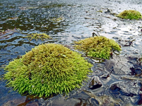 ![]() 道路の水溜りに、コケ |