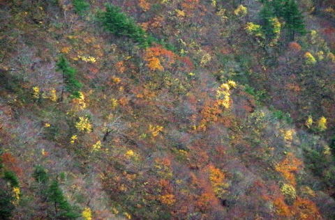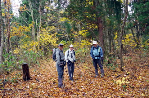 ![]() 観音峰を下ればブナ林の中は紅葉 |