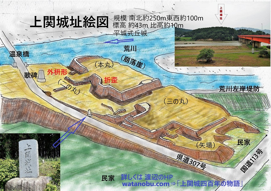 桂の関に築かれた上関城は、伊達口の守り