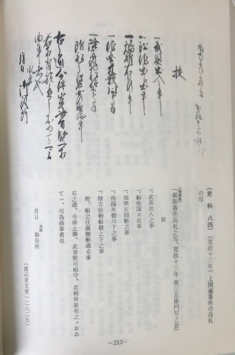 寛政13年(1801年) 瀬番所の高札 (「近世関川郷史料三」から)