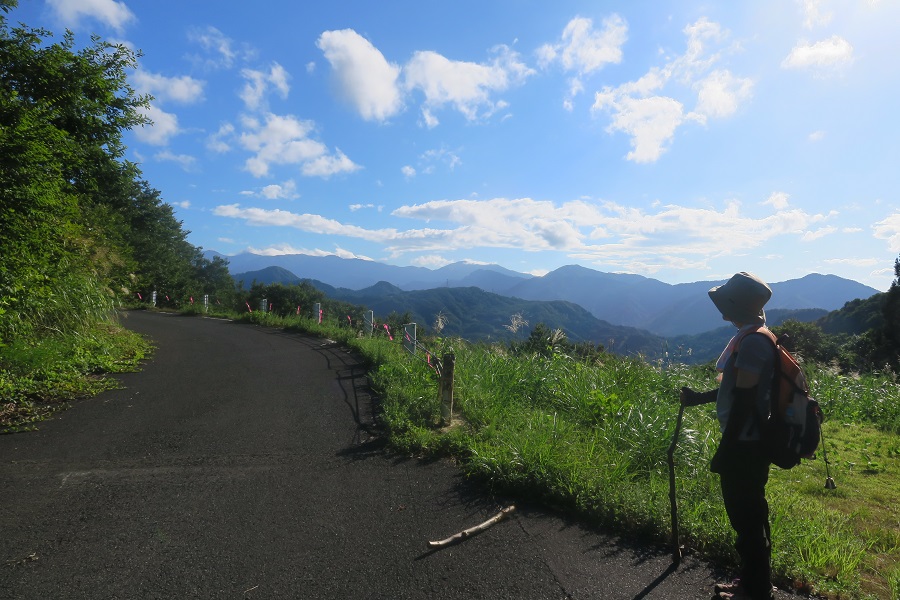 車道に削られた崖の上に峠道