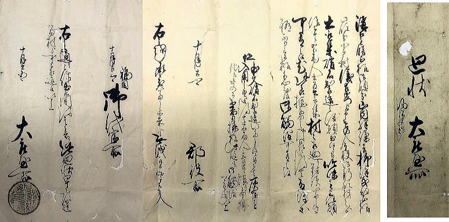 寛政3年(1791年) 米沢藩中老莅戸善政(鷹山腹心)宛 渡辺家当主と親戚3名の連署