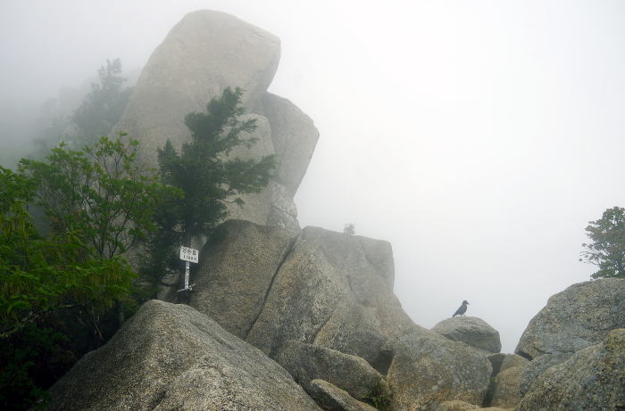 標高1100m 八合目の岩場に棲むカラス 修験の山・御在所岳の主?ヤタガラス?