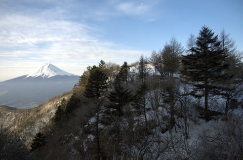 啓蟄が間近になると、山登りの虫が蠢きだす。 今季の初登山は、山梨県まで遠征して、三ツ峠山に登ることにした。日本一の富士山を展望する絶好のスポットだという。 日帰りでも可能なコースだが、遠路の往復を考えて二日日程とり、山頂の山小屋に予約を入れた。 一日目は、北西の季節風が強まって、関越道の湯沢付近は猛吹雪。関越トンネルを抜けてもまだ吹雪。だが、関東平野に出ると一変。二日間とも、すっきりと晴れて噂に違わぬ絶景に出逢えた。 |