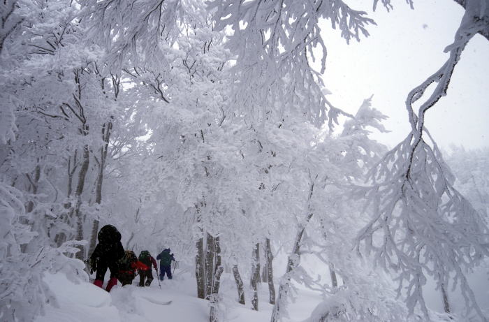 ![]() 10:52 三ノ峰山頂間近 氷点下の氷雪樹林を登る |