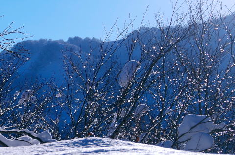 ![]() 8:55 梢の氷に朝陽が透けて、今この時だけのクリスタル | |||||