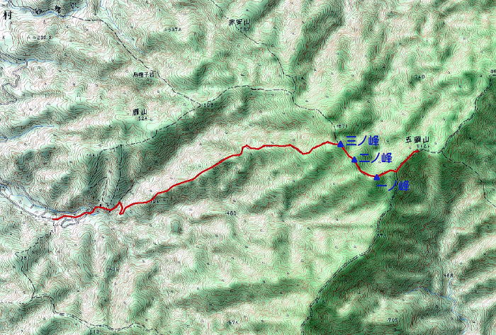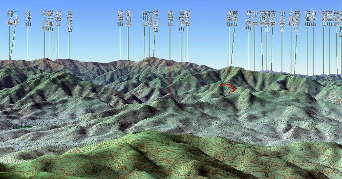 ![]() カシミール3Dのカシバードで、蒜場山と俎倉山がようやく確認できた |