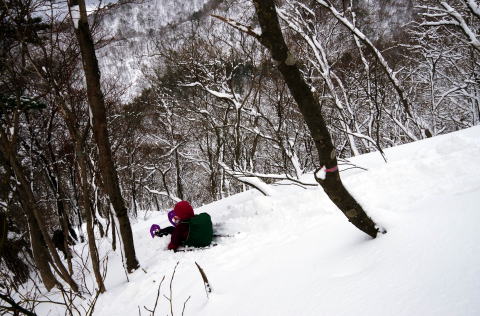 ![]() 14:26 休憩所からの急斜面をシリセードで一気下り |