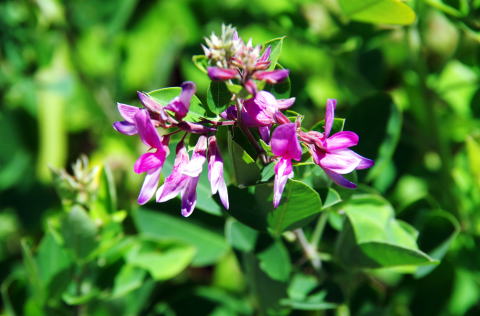 ![]() 早くも萩が咲いて道に彩を添えていた、ヤマハギか? |
