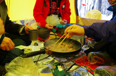 ![]() 11:15 テントの中ではいつもの如く、たらふく食って飲んで |