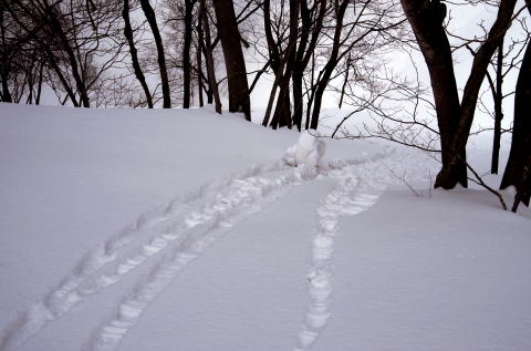 ![]() 13:35 雪を転がして遊びながら下山 小型トラックのタイヤほどに |