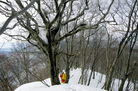 ![]() 13:43 枝を広げたブナの大木を見上げて |