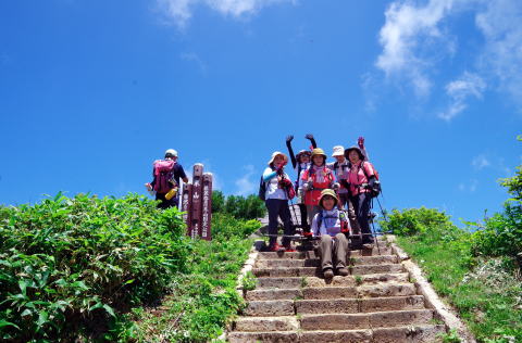 ![]() 11:44 米山山頂で、第5班の登頂記念撮影 |