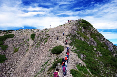 ![]() 7:11 小仙丈から山頂へ続く稜線を歩く、気分は最高!! |