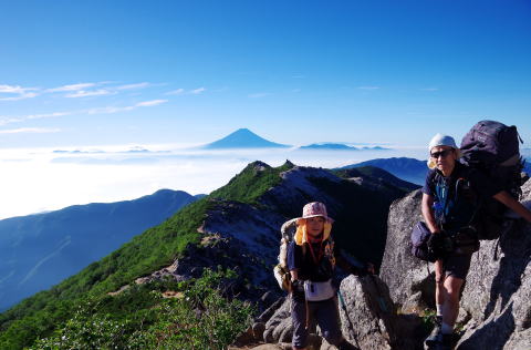 ![]() 7:33 薬師ヶ岳山頂で遊ぶ子、何とも贅沢な遊び場 |