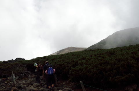 ![]() 13:54 肩ノ小屋から登山道、先に見えているのは中間ピーク |