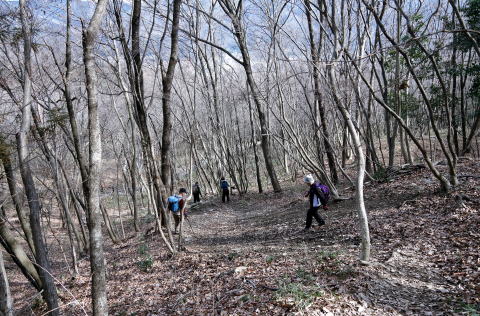 ![]() 13:11 下山途中、ショートカット登山道の雑木林がなんとも気持ちよく |