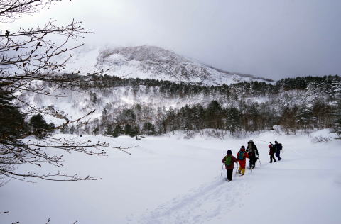 ![]() 9:18リフトを降りて、軽快にスノートレッキング出発 |