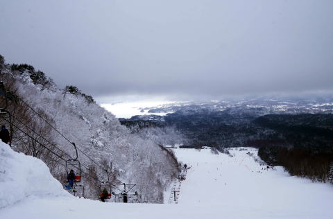 ![]() 13:23 ゲレンデトップから 遠く桧原湖に釣り人がたくさん見えた |