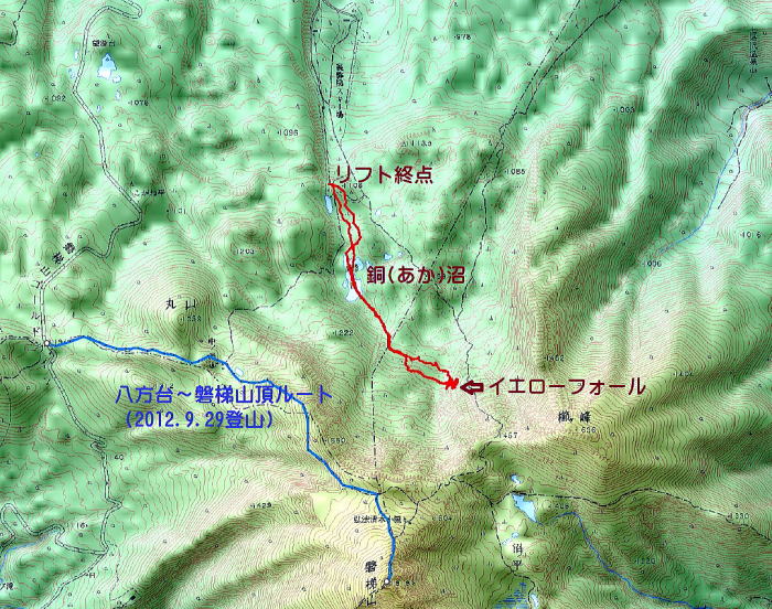 ![]() <コース> 9:17リフト終点出発-9:35銅沼-10:29イエローフォール10:50-11:29リフト終点到着 |