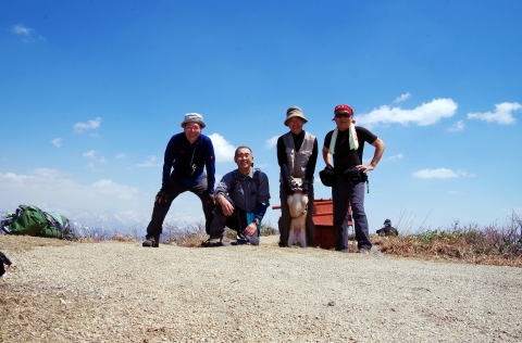 ![]() 11:28 山頂で、2年ぶりの登頂記念撮影 |