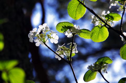 ![]() 14:54 分岐で、光を透かすムシカリの花を見た |