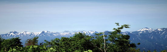 ![]() 7:07 駐車場から朝日連峰 左端・大朝日岳 右端・以東岳 |
