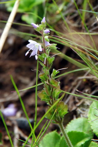 動画をYouTubeにUPしました。 →こちらから どうぞご覧ください。 もう十数年も昔のことで、季節も定かではないが、美ヶ原には、Okkaaとドライブで来たことがある。 松本から渋滞の車列につながって山道を上った。 上り切った行き止まりの駐車場の車の多さと、降りて歩いている観光客の多さに辟易し、下りが混まないうちにと、早々に下山した。 今思えば、その駐車場は山頂・王ヶ頭の近くなのだが、高原をろくに歩きもしなかったから、当然、山頂碑のところにも行っていない。 ただ広い高原の上に出たことと、草原が広がっていたことしか印象に残っていない。 近年になって、そこが百名山の一つだと聞かされても、どこかピンと来ない。 その美ヶ原に、思いもよらず来ることになった。 今回山行の主目的は、甲武信ヶ岳と金峰山。 3連休の中日に、一日がかりで甲武信に周回往復し、最終日に半日日程で金峰に登る。前泊の初日は日程に余裕が出る。 ならば、宿泊地へ向かう途中で、ひと山巡って行こうということで、霧ヶ峰にするか美ヶ原にするか。 どちらも、車で簡単に上ることができる。いわゆる、俗称・サンダル百名山。 高速道の車中で、では、美ヶ原へとなった。 十数年前のドライブでは、確か、車山の山頂にも行った。 そこが、百名山・霧ヶ峰の山頂だとこの日の車中で教えられて、初めて知った。 まさに、サンダル履きで百名山の一座に立っていたことになる。何となく後ろめたい。 美ヶ原は、前述のように山頂には立っていない。 美術館側から歩けば、高度差はそれほどないものの、距離はある程度ある。 だから、立派な山歩。楽ちんではあるが、後ろめたさはない。 さて、牛伏山への木道を歩いていて、まず目についたのは、ハクサンフウロ。異様なほどに数が多い。 牛伏を越えた辺りに説明看板があって、それで分かったのだが、在来植生として復元したとのこと。 なるほど、それでこれほどまでに増えたのかと納得。 看板には、ハクサンフウロのほかに三種、グンバイヅル、マツムシソウ、シャジクソウも復元中とあった。 その看板を見るまで、登山道の石の間に咲いていた小さい花を、てっきりミヤマクワガタだとばかり思っていた。そっくりの花、それがグンバイヅル。 道に屈んでその花を撮ろうとし、ミヤマクワガタだと呟いたら、通りがかったおばさんが立ち止まり、変な顔をしてこちらを振り返っていた。 あれは多分、グンバイヅルだと教えたかったのだろうと後で気づいた。 山で知ったかぶりをして花の名を唱えるのはやめた方がいいと、いつも思っている。 木曽駒だったか、得々とした顔で花の名を説明しているおっさんに出会ったことがある。 殆ど的外れ。心の中で冷笑した。 翻って多分、自分も同じ目に合っているはずだ。 だから、山で人に聞こえる声で花の名を唱えるのは、もう止めにしよう。 そう思いながら、ついつい口に出てしまう。 シャジクソウも初めは分からなかった。 牧場には牧草のアカツメクサが沢山咲いていて、その花の咲き終わりで花びらがバラケ出したのかなくらいに思っていたが、どうも葉がツメクサではない。 看板の写真が鮮明でなかったので、照合できなかったが、帰宅してからネットで調べて分かった。 シャジクソウ、グンバイヅル、いずれも今回初めて出会った花たち。 ついでに言えば、王ヶ頭の岩盤に張り付いていた黄色い花、どう見ても、ミヤマキンバイだが、どこか色が鈍いのが気になってはいた。 これもネットで調べて、イワキンバイだと分かった。 Unqさんなら、ではどこが違うのか、花弁の数か、葉の付け根か、つき方かと、細かく追及・分析するのだが、私の場合は、ざっくりと印象で判断。 これを文学では印象批判と言うのだと、文学者のUnqさんは言う。 私の場合は、印象と直感で70年生きてきた。 だから、山歩紀行もせっせと印象を綴っている。 おかしかったのは、塩クレ場にあったトイレの看板表示。 向かって右の入り口には、黒でオス牛の絵、左には、赤でメス牛の絵。 牧場の中のトイレだから、これはてっきり牛さん用のトイレだと、早とちり気味の人は、勘違いするのではなかろうか。 早とちりの印象判断は、あぶないあぶない。 それにしても、美ヶ原、広い広い山頂台地だった。 ![]() ホソバノキソチドリ かな? |