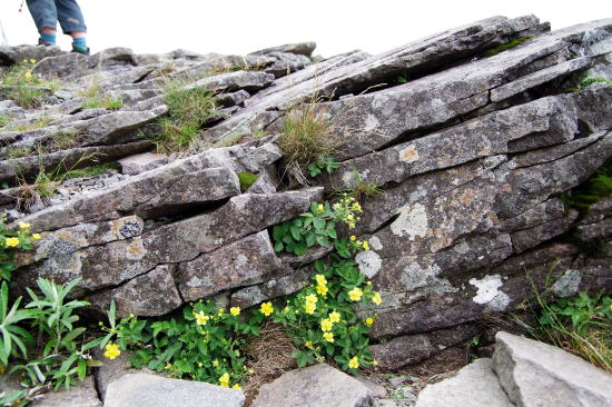 ![]() 王ヶ頭の岩壁に咲く花 ミヤマキンバイかと思ったら、イワキンバイとのこと |